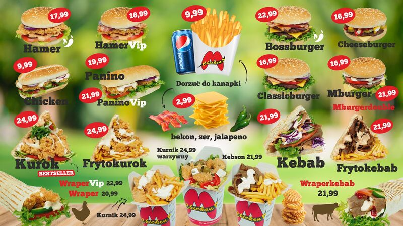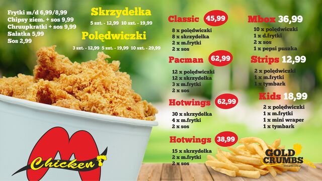 Mchicken to rodzinna restauracja. Istnieje już od 10 lat. – Nasza kuchnia to uczta dla miłośników pysznego kurczaka w panierce. Wszystko przygotowujemy od podstaw i tuż przed podaniem. Codzienne dostawy świeżego mięsa gwarantują jakość!